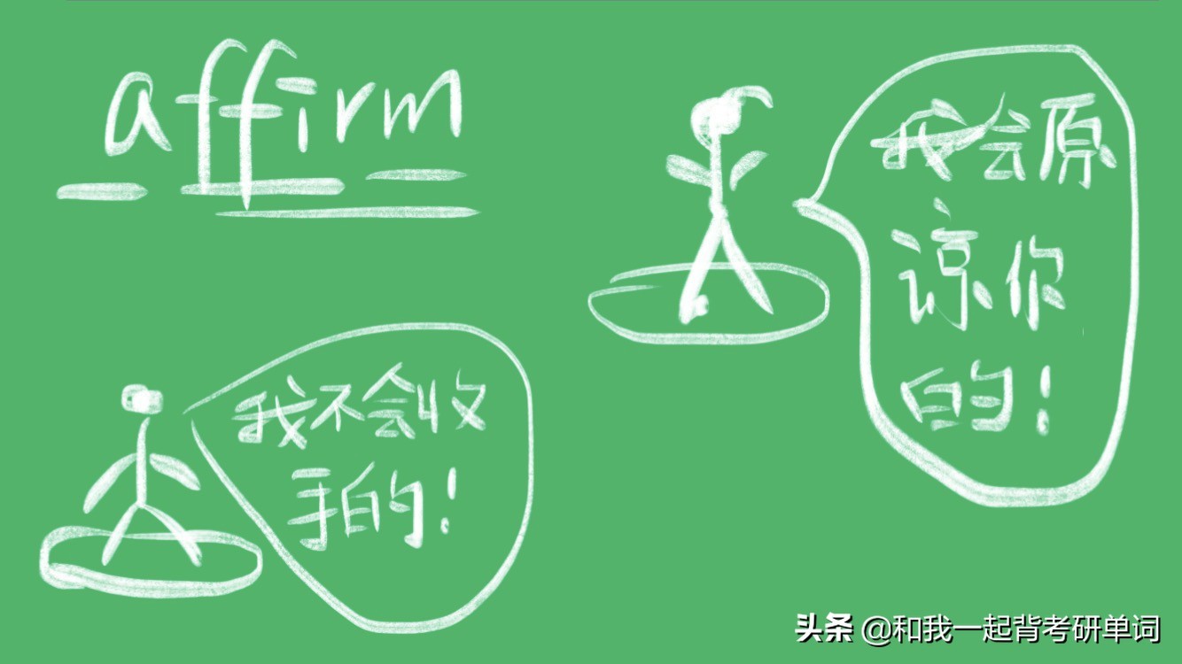 affirm, 意思是断言、声称(说某件事是真的)、公开声明对某些观点的支持。其实大家可以看出来,主要是断言、声明。