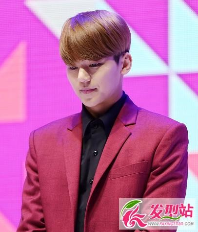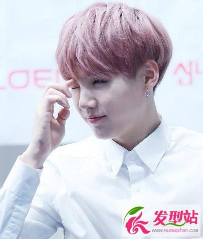 男生短发蘑菇头造型,两边剃短,但是上面的头发能盖住光头的鬓角,搭配粉色染发特别个性。