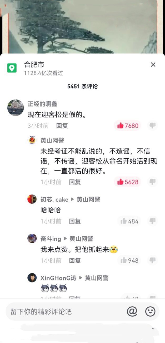 第二:某音视频中下面的评论有很多说是课本上告知是假的。 其实当年自然衰老枯死的并不是迎客松而是600年树龄的拢龙松,黄山景区就在原来的位置上制作了塑料模型安慰慕名而来的游客,2002年某媒体报道黄山时出现失误,误把拢龙松当成了迎客松。2005年,黄山迎客松附近的送客松自然死亡,可能被网络上的积极分子被传为迎客松。