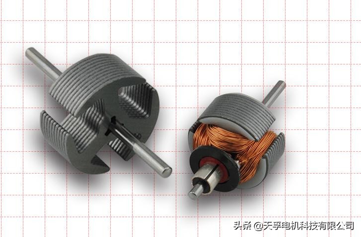 微电机虽然体积小,但是内部结构非常齐全,以微型直流电机的转子为例,它就分为四个部分组成。
