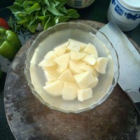 12.土豆切去皮块,泡在水中备用。