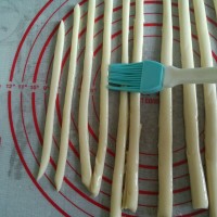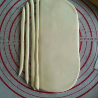 6.面皮切成同手指宽的长条。