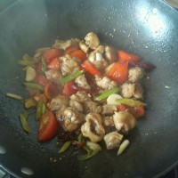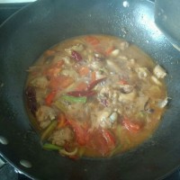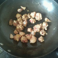 18.加鸡肉块大火翻炒。