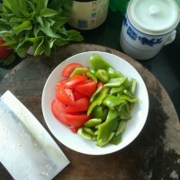 14.青椒,西红柿切块备用。