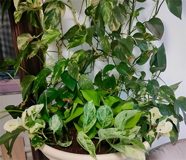然后就是提高养护环境的湿度,当湿度比较高的时候,绿萝的叶片会更加油亮,也很美观。另外,冬季的绿萝不建议养在10摄氏度以下的环境里,我们尽量将它养在温暖的室内吧。