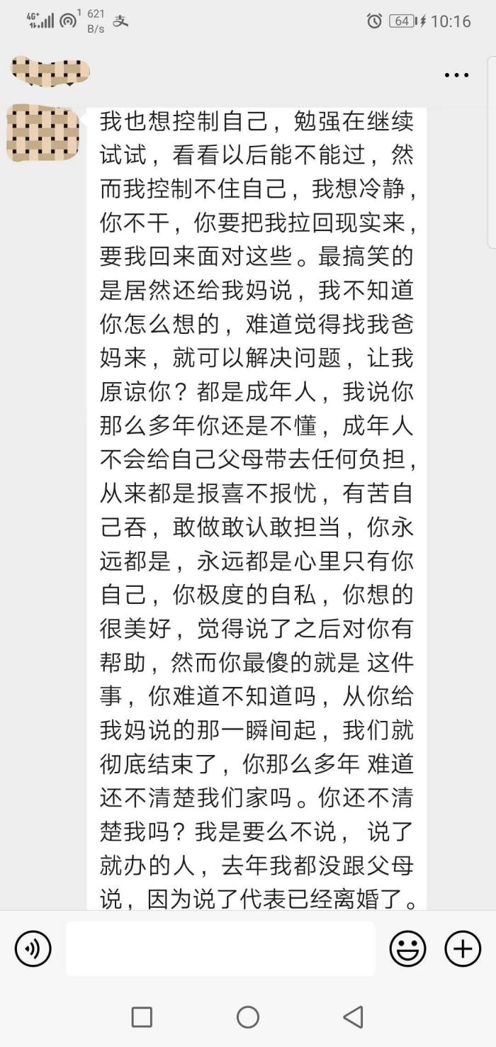 我不想离婚,但他总说我们三观不合,觉得我很自私。18年出轨的事情,他原谅了我,可是却不再信任我,他在我车上、手机上都装了定位。