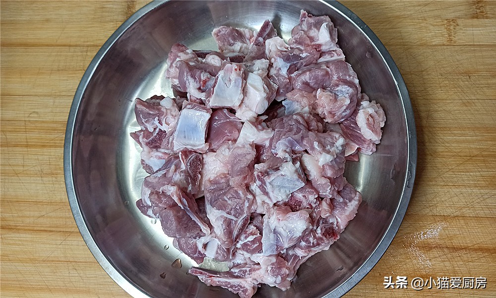 排骨要选6个月左右出栏的猪的排骨,最简单的判断方法就是,排骨中间的骨头比较细,骨头大的一般都是将近1年以上的,这种排骨是炒不熟的,只能炖了。