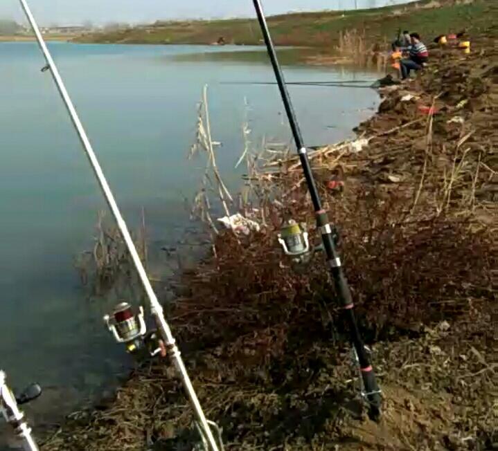 横式横卧竿横向插礼在岸边,与地面平行,尖稍高于地面,竿线与水面保持70~90角。可以左卧,也可以右卧,以顺风为好。这种插法避风力强,使风浪对竿、线的影响减少到最底程度同时,反应灵敏,便于观察,插放提竿,操作简捷。直卧将竿尾插岸边,竿线呈一直线,竿与水面无角度或角度很小,鱼吞钩后直接作用于线。与横卧式相比,直卧式上钓率稍低,反应稍显迟钝。