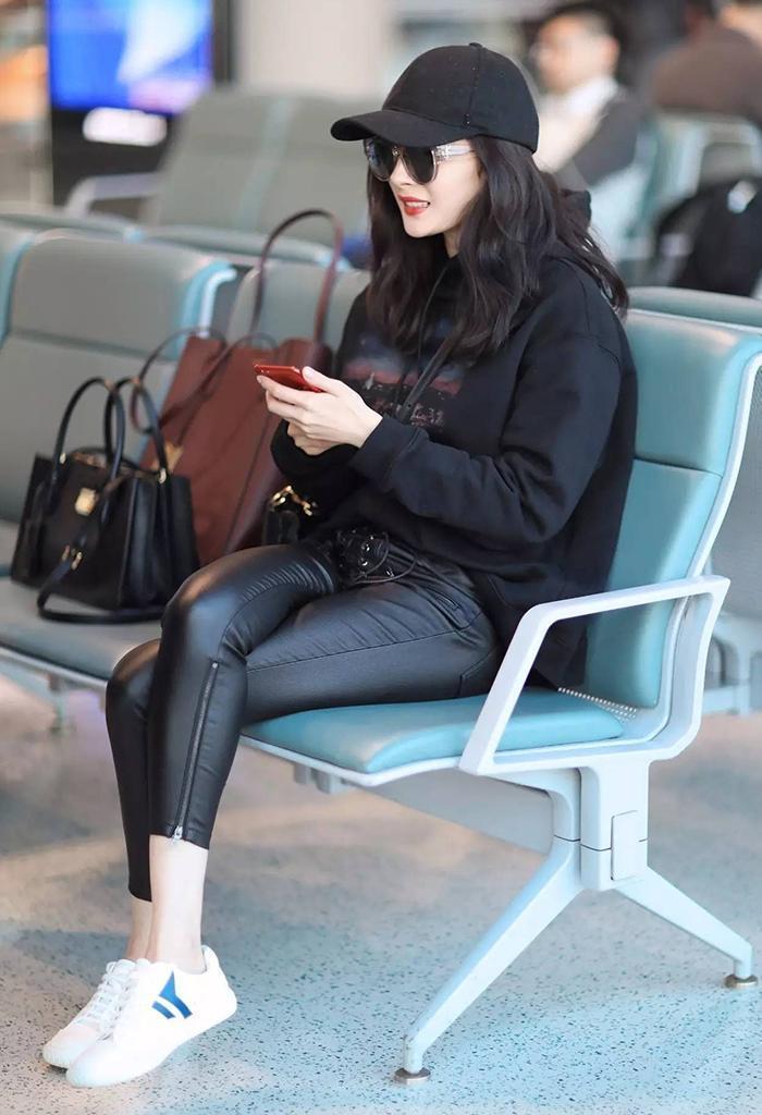 相对比突然火起来的老爹鞋,小白鞋可以说是鞋界中的“元老”,它的鞋面以纯白色为主色调,鞋型多为平底浅口的款式,不仅能与不同颜色的服饰组合搭配,也可以凭借着偏浅的鞋口设计来最大限度地突出腿部线条,显高又好搭。像杨幂就热衷于穿小白鞋,此次机场造型也穿了一款,即便搭配存在感极强的紧身皮裤,也照样能起到一个中和的作用,休闲感倍增。