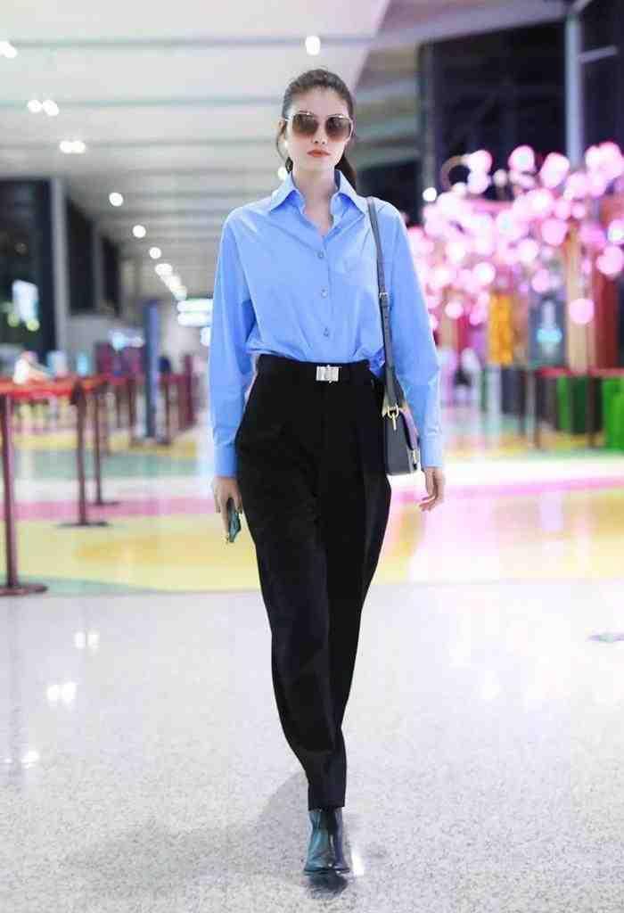 若要票选出所有靴子中最不挑人穿的一款,那一定非切尔西靴莫属,其采用皮革材质制成的鞋面既防风又耐磨耐脏,结合高度在脚踝以上不超过2cm的靴筒设计,不论你是小腿粗,还是腿部比例较差,都能轻松hold住这款单品。像何穗的机场穿搭就选择了一款黑色切尔西靴,搭配裤型利落的烟管裤,既显高又自带高级感。