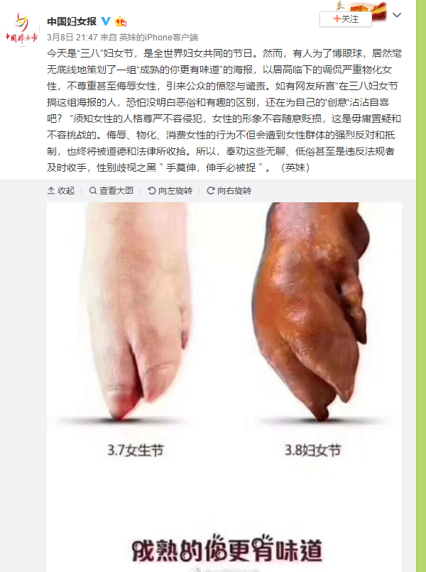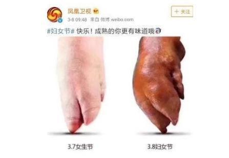 凤凰卫视微博当初来祝福三八妇女节的时候的一个配图,确实不太妥当。