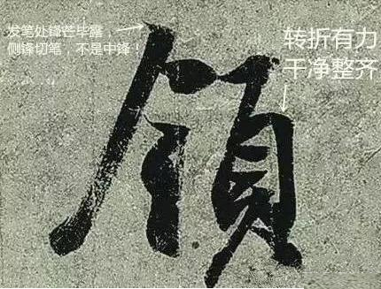 释读:趯笔,又名“趯(yuè)锋”,要求中锋行笔,推笔缓行,力贯笔尖,以避点画软弱瘫痪。“中锋取劲,侧锋取妍”,取劲则多骨力,取妍则多媚肉。梁武帝说:“纯骨无媚,纯肉无力。”颜氏所谓“雄媚”,有骨肉交融,中锋与侧锋并济之势。