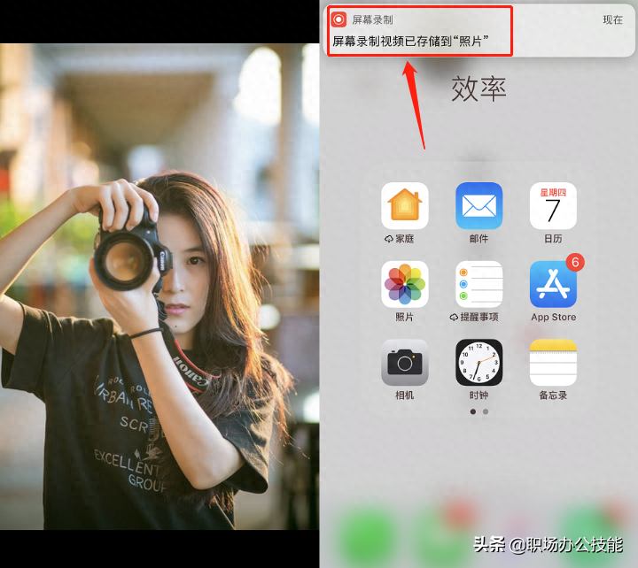 开启录屏之后,根据自己要想的速度滑动照片,也就是估算每张照片停留在视频中的时长,等到最后一张照片划完之后,就可以结束录制了。这样,一段视频也做好了,系统会帮我们自动保存在“照片”中。