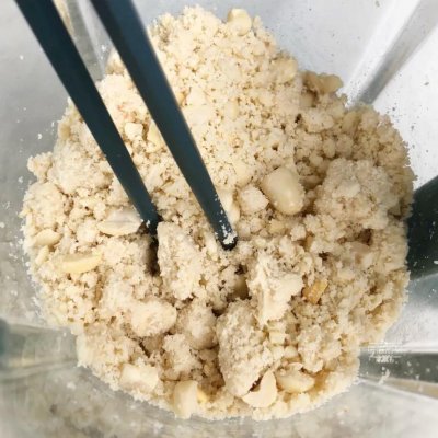 9、如果打碎的花生出油比较少,可以倒入10克花生油或者芝麻油;