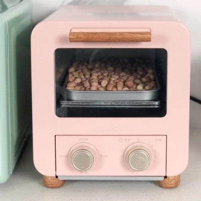 2、300克花生放烤箱500W烤10分钟左右(花生含有大量蛋白质和脂肪,以不饱和脂肪酸为主,且大部分为亚油酸,能避免胆固醇沉积,适量食用可预防动脉硬化等);