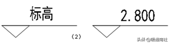(2)①绘制一个标高符号(三角形高3,全长15)。