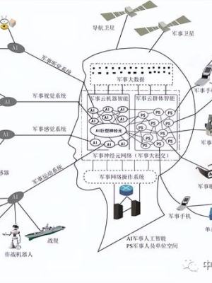 (2)将军事相关的音频传感器、视频监控、遥感卫星、导航卫星、温度传感器、压力传感器、军事机器人、导弹、坦克、战机,军舰等等元素加入到互联网大脑模型中,形成军事大脑的军事听觉神经系统、军事视觉神经系统、军事躯体感觉神经系统、军事运动神经系统。
