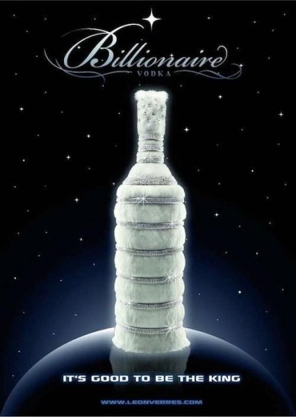 当年发布的2015亿万富翁伏特加钻石版系列是2012亿万富翁伏特加的翻版。标价725万美元,是世界上最贵的伏特加。瓶身装饰有镶嵌在黄金中的两千颗钻石。
