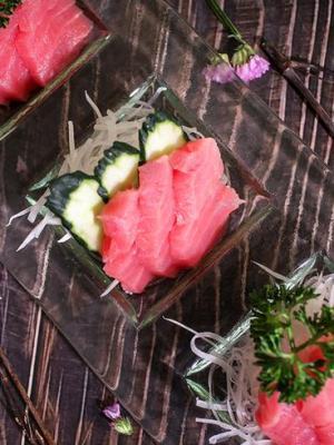 值得一提的是,正宗的日式日本料理在供应刺身时,会在生鱼片下放一片竹叶。