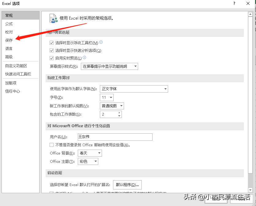 进入*EXCEL选项*对话界面,单击*保存*按钮。