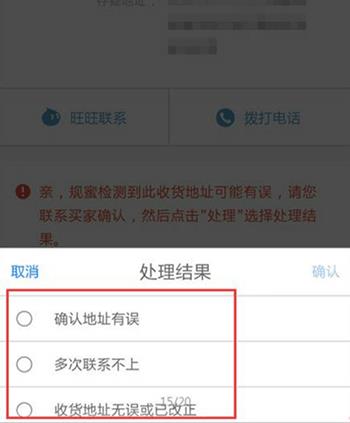 若地址有误,并且无法联系买家,可先判断该订单无法顺利交易,点击相应标签选项进行备案,备案成功后可不已随居苏石发货。若地址正确或已联系上买家修改成正确地址了,点原搞击“收货地址无误或已改正”即护某他可。