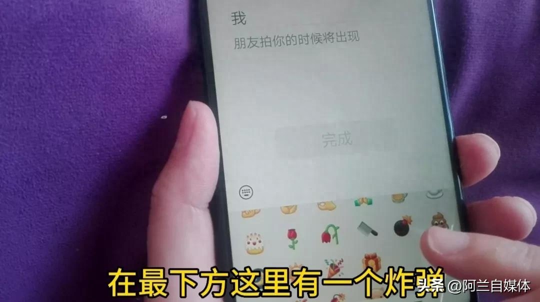 那么在这里就有很多的表情大家可以使用了,如果说你想使用刚才像炸弹炸裂的效果的话,在最下方这里有一个炸弹,我们把它点一下,那么就输入上了,如果说这个时候你还想输入别的表情,比如说像花花之类的,我们还可以输入一些表情的,输入好了之后,我们点下方的“完成”就OK了。
