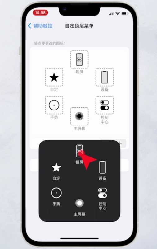 方法二:进入手机设置,进入辅助功能,选择触控,打开辅助触控功能,然后点击自定义顶部菜单,在默认界面中选择截屏并完成。