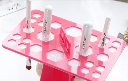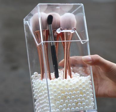 我并不是每天都会化妆,所以化妆刷使用率并不高,所有化妆刷都是周末统一清洗,平时收纳在这种亚克力盒子里面,不会落灰,还能把化妆刷插在这些小珍珠上面