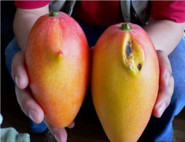 一看:如果芒果的表皮上有少许黑点,但并不是发霉迹象,吃芒果的7大禁忌,还是可以选购的,但是如果这些黑色斑点呈扩散的趋势,就不要选购了。