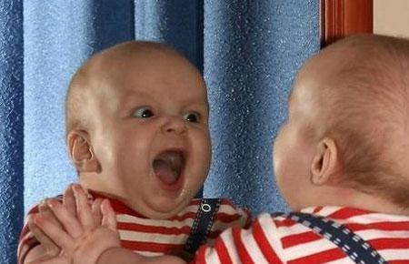 当宝宝6个月大照镜子时,不但会对镜子中的影像微笑,而且已经能够分辨出自己与镜子中影像的不同。