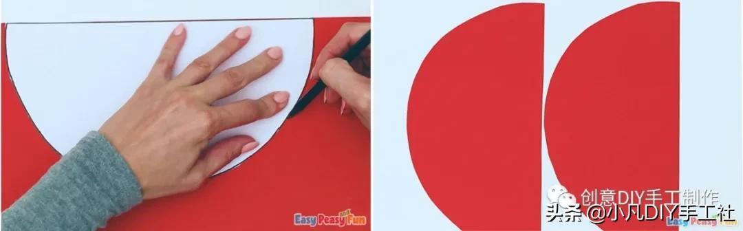 2.用这个半圆模版,裁剪两张半圆红纸。