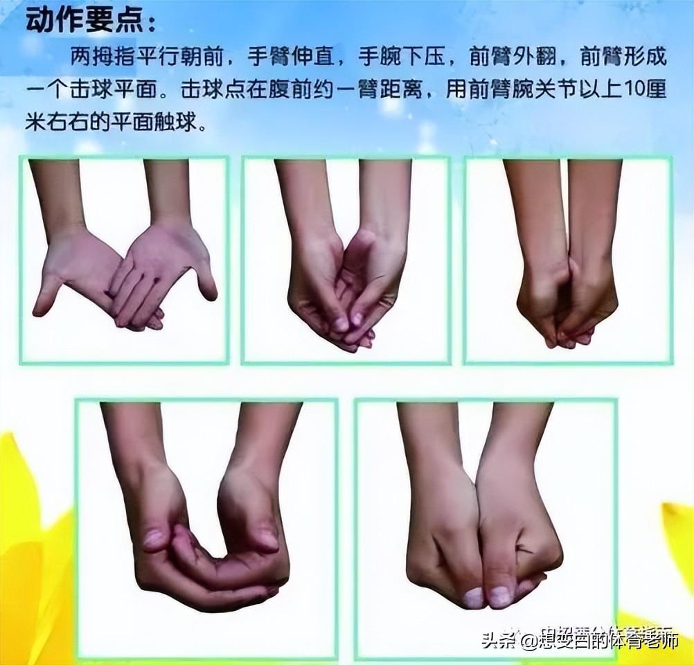 要点:用前臂的手腕关节以上10厘米左右的两小臂桡骨内侧所构成的平面击球;击球的后侧下部。