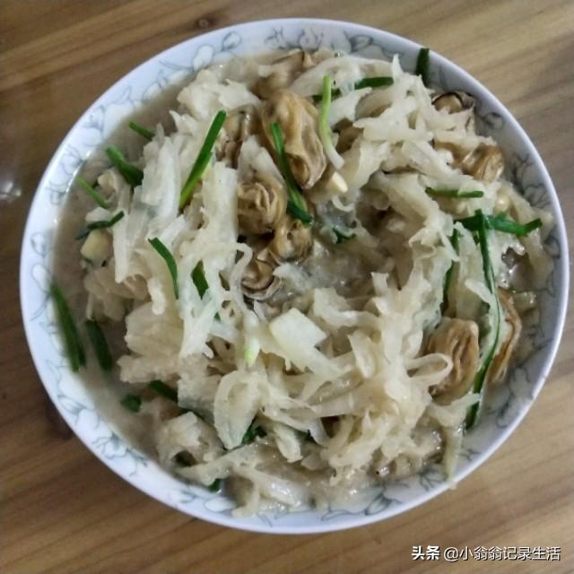 准备好一些牡蛎,牡蛎要适中那种,不要太大也不要太小,然后准备一个白萝卜,葱,盐,油。