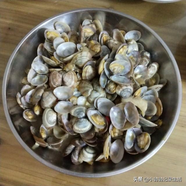 准备一斤新鲜花甲螺,盐,油和椰子片。