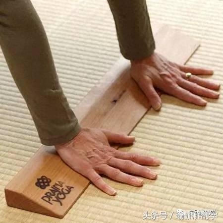 从上图中可以看出,下犬式中大臂外旋,胸小肌向上,小臂内旋上提,远离地面,双手五指分开推地。在下犬式中,很多小伙伴出现手腕痛,就在于小臂没有上提远离垫面,力量压在手腕上,导致手腕痛。如果在下犬式中,无法找到小臂上提的力,出现手腕痛,可以先借助瑜伽辅助进行练习(如下图所示)。