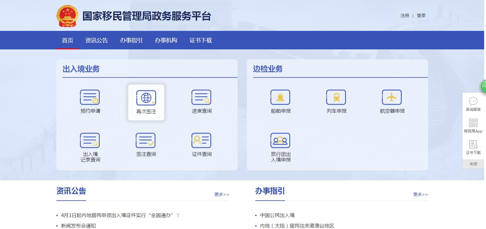 1. 国家移民局政务服务平台 (网址:https://s.nia.gov.cn/) 。