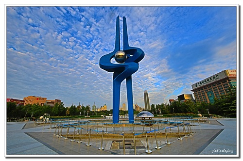 城泉场的前世是正觉寺街以北至后营坊街片区。其中泉标处是济南八中旧址,也就是原正觉寺遗址。泉标的“泉”字是古体隶书的泉,上有三个尖,代表趵突泉的三股水,中间的明珠镶嵌,象人的眼睛一样,比喻泉水乃是济南市的珍珠。整个泉标的造型流畅别致,蓝色主调,立体感强,如水翻腾,一泻而下,气势磅礴。泉标的三个支柱稳稳地插入深厚文化底蕴济南八中旧址土地上。
