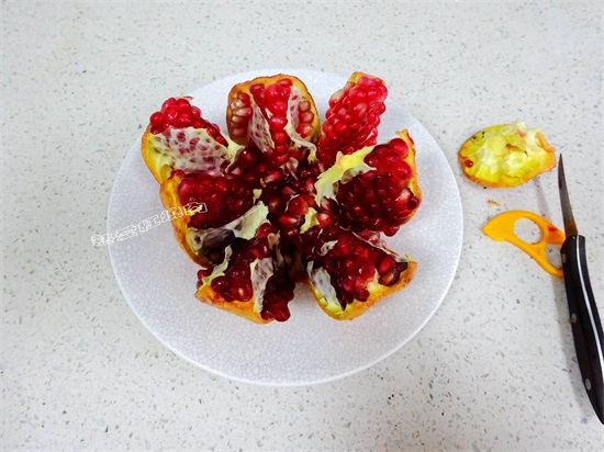 5很容易就能取出石榴籽,可以用勺子舀着吃非常带劲。
