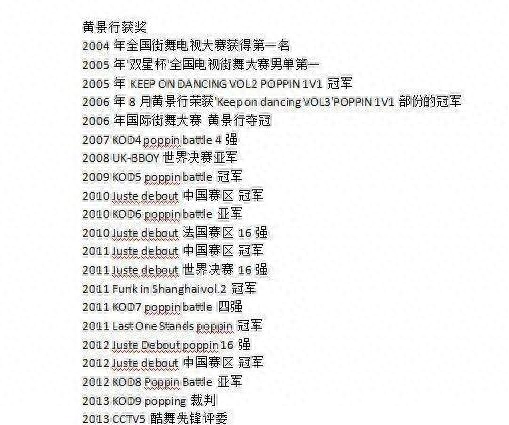 黄景行,86年6月18日出生于浙江温州,毕业于北京现代音乐学院。03年1月 参加荷兰样板戏《中国》的拍摄,该片最终在荷兰荣获最佳舞蹈奖,03年10月荣获首届健力宝《爆果汽杯》全国街舞电视大奖赛流行集体冠军 , 04年承担全国大学生街舞大赛全国总决赛的表演嘉宾,8月荣获第二届全国电视街舞大赛总决赛流行街舞集体冠军等。