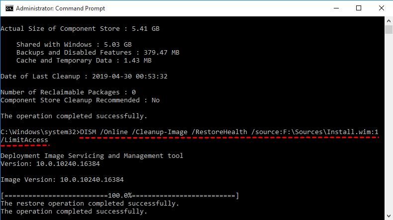 Dism/Online/Cleanup-Image/RestoreHealth/source:F:\Sources\Install.wim:1/LimitAccess