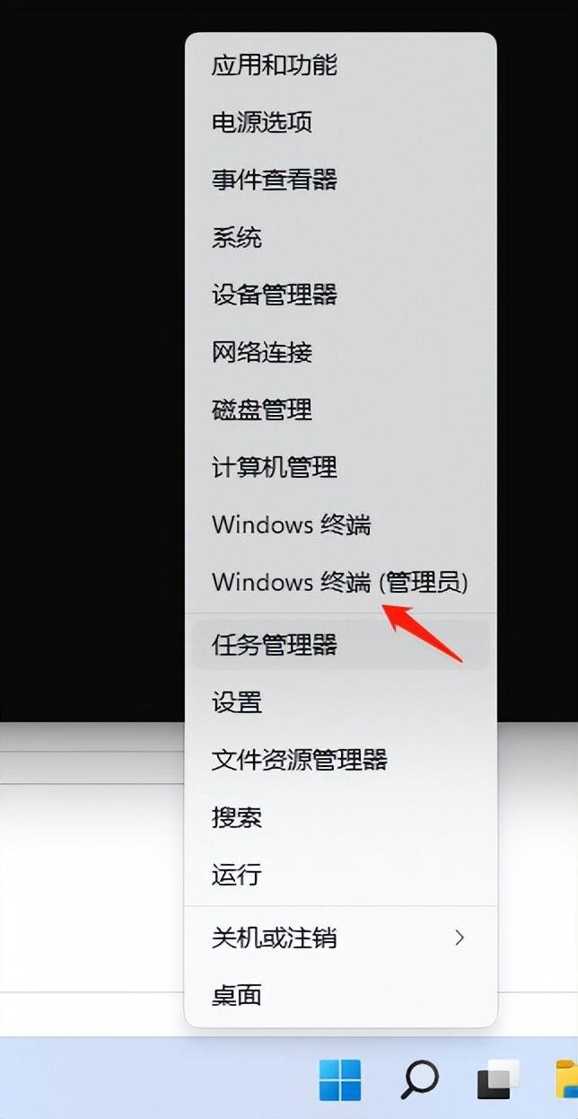右键点击任务栏上Windows标志,并点击 【Window 终端 (管理员)】。