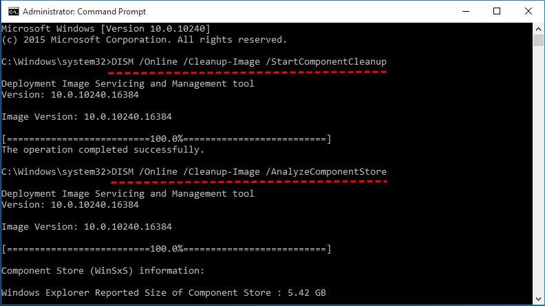 Dism/Online/Cleanup-Image/StartComponentCleanupDism/Online/Cleanup-Image/AnalyzeComponentStore