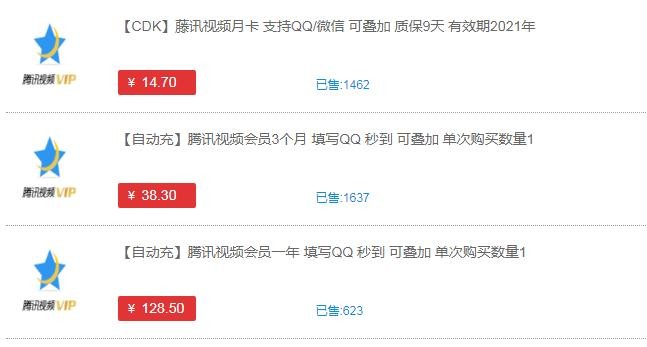 这是腾讯官网和会员饭的会员价格对比图,会员饭的价格要比官网便宜很多,拿年卡举例。