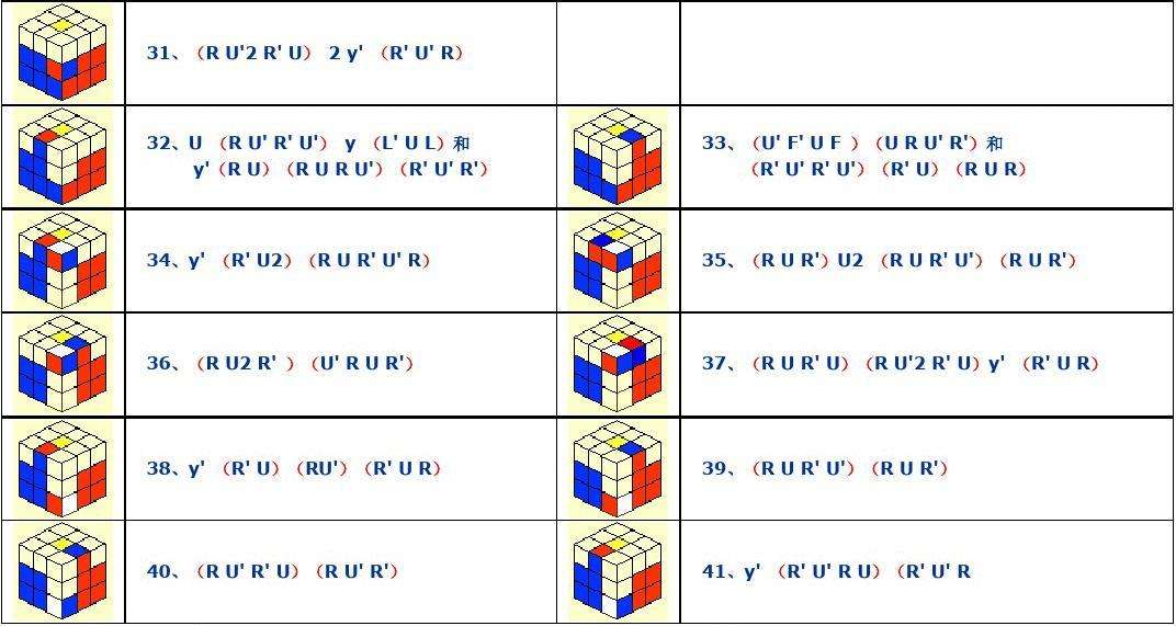 首先选择任意一个颜色为底面,这里选择白色为底,然后按如图所示的方法旋转变成十字的样子然后开始还原两边的颜色,按图中步骤旋转变成倒T形接着再来还原中间棱上的色块随后将魔方四个顶棱块与顶面色相同的面全部调至顶。
