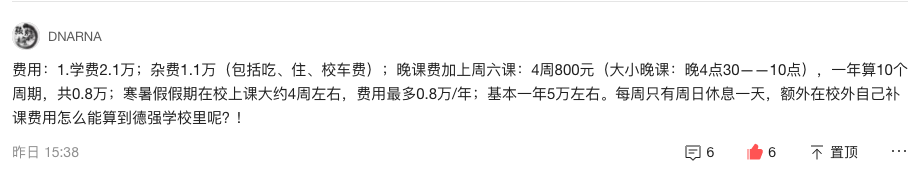 关于学费,昨天有人做了补充,高中一年是5万,可能班次不同,价格也不同,7月31日招生时每年学费是3万。除了学费,可能还有单独的补课费用。一年下来10多万。