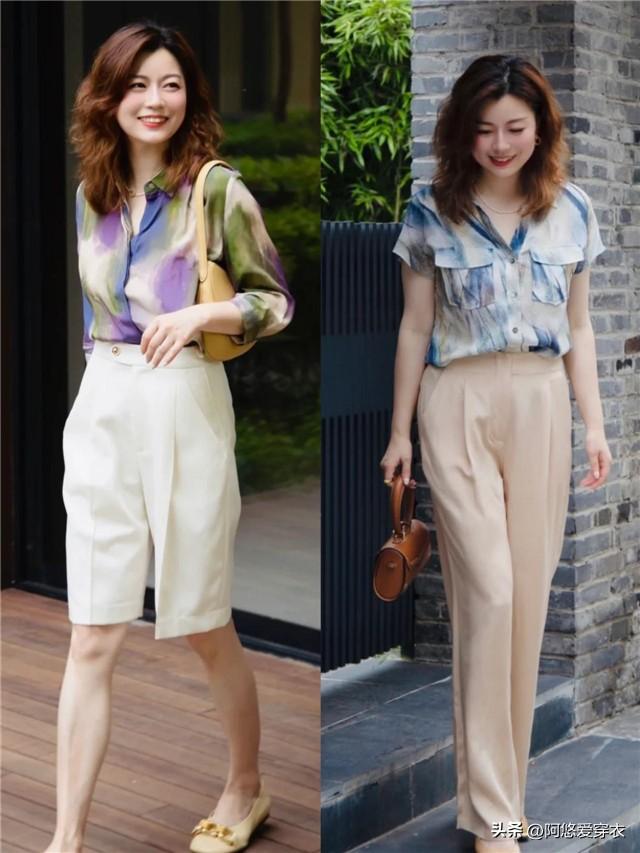 像这种简单的杏色奶奶裤颜色简约低调,上半身结合各种花衬衫,通过不同的花色去点缀,可以很好的丰富你的穿搭,并和下半身的杏色奶奶裤形成对比。