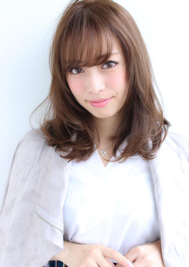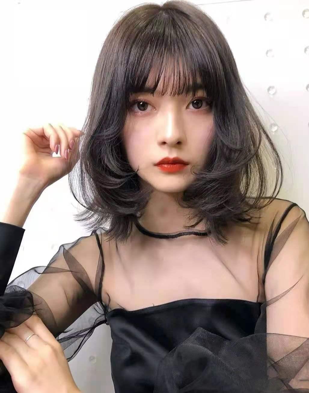 ▲ 这款发型就是标准的锁骨发,发型层次结构主要集中在发尾最下端,轻盈微卷增加了动感效果。齐斜的刘海既遮盖了较窄的发际线和额角,又把五官衬托的精致好看。棕色的发色不仅增加了肌肤的亮度,也给这款发型带来非常好的减龄效果。