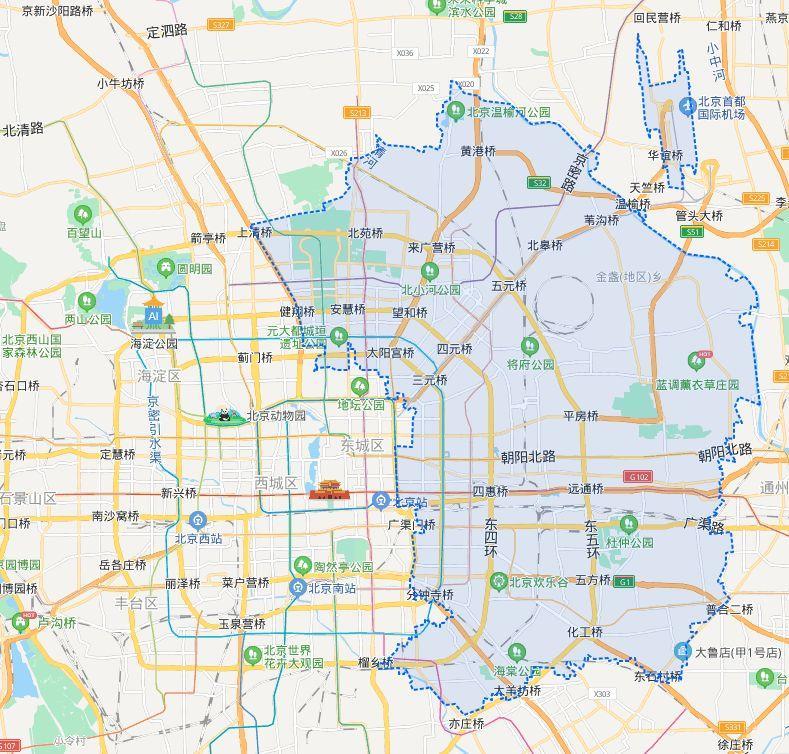 北京市朝阳区,是北京市主城六区之一,位于北京市的东部,来看下大致位置。