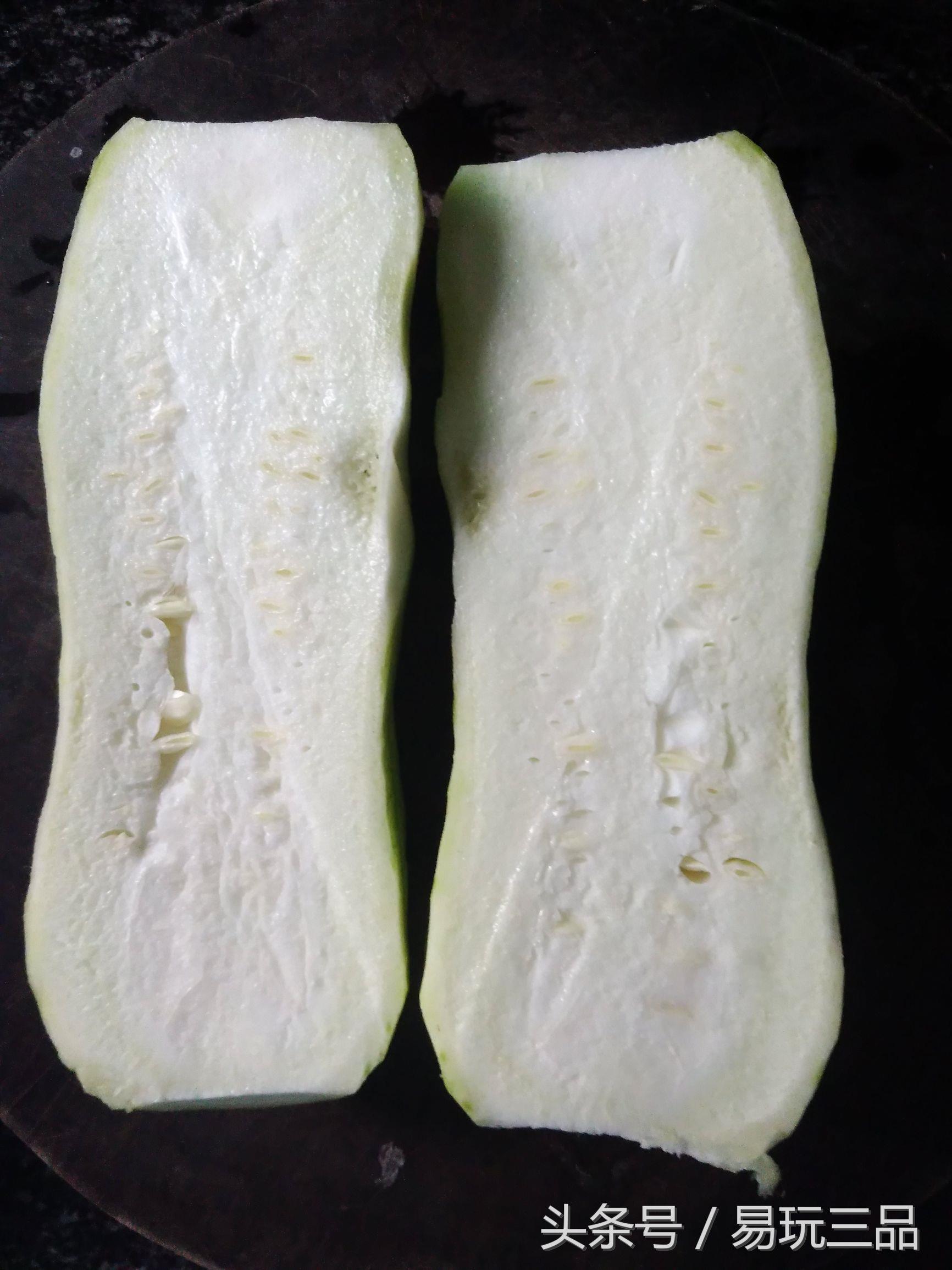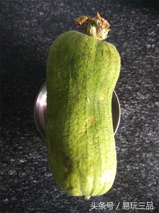 新鲜短胖的肉丝瓜,皮带绿黄,质白肉嫩。此色丝瓜当阳面,光照充足,肉无苦涩带微甜。