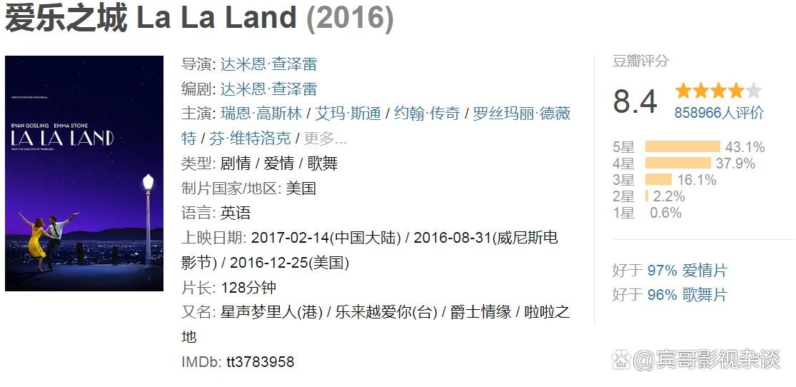 《爱乐之城》是由达米恩·查泽雷执导的喜剧歌舞片影片讲述了男女主人公在洛杉矶邂逅,因为爱情,两人在追梦的路上相互鼓励,彼此成就的故事。